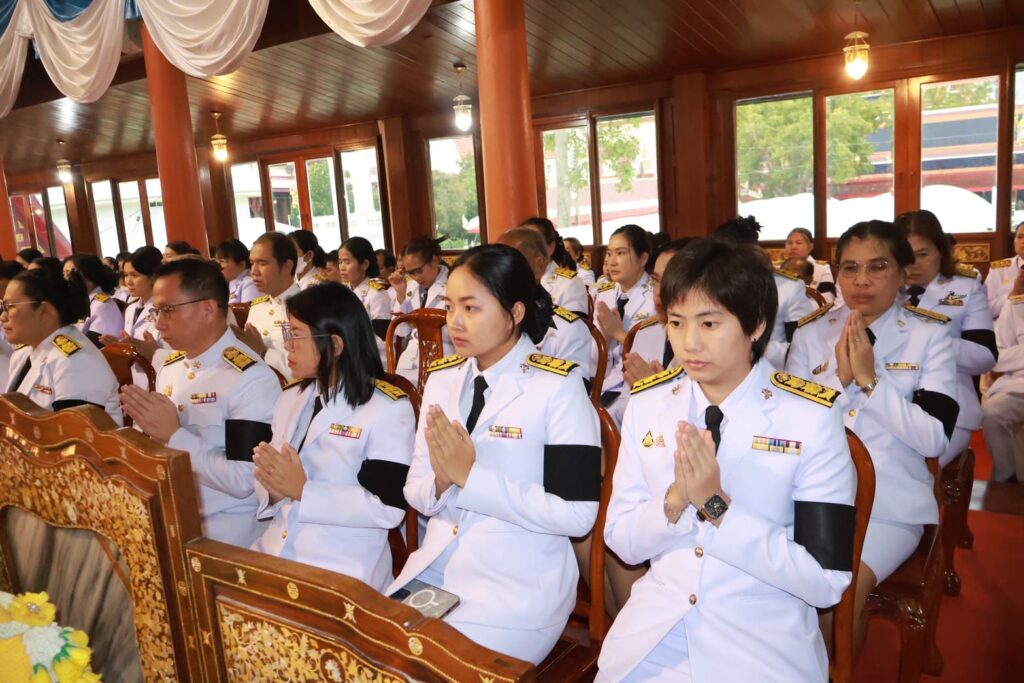 วันที่ 30 ตุลาคม 2568 เวลา 17.00 น. ณ ศาลาการเปรียญ วัดไชโยวรวิหาร อ.ไชโย จ.อ่างทอง ผู้อำนวยการสำนักตรวจเงินแผ่นดินจังหวัดอ่างทอง ได้มอบหมายให้นางสาวเดือนเพ็ญ หามนตรี ผู้อำนวยการกลุ่ม พร้อมด้วยข้าราชการ สำนักตรวจเงินแผ่นดินจังหวัดอ่างทอง ร่วมพิธีบำเพ็ญกุศล ในวาระครบ ๗ วัน (สัตตมวาร) ในการเสด็จสวรรคต เพื่อถวายเป็นพระราชกุศล แด่สมเด็จพระนางเจ้าสิริกิติ์ พระบรมราชินีนาถ พระบรมราชชนนีพันปีหลวง